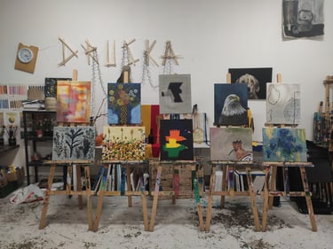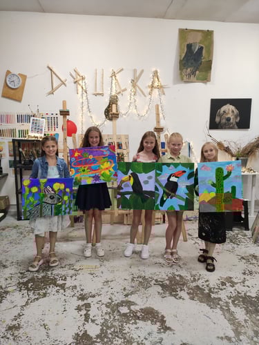 Tapybos temos: Galima pasirinkti studijos siūlomas temas arba pasiūlyti savo. Pvz.: abstrakcija, kubizmas, gėlės, gyvūnai, natiurmortas (pastatymas, kurį tapome iš natūros), bendras dalyvių paveikslas ir t.t. Temų ir išpildymo būdų gali būti įvairovė.
