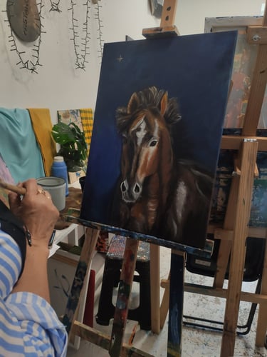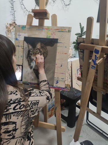 Viską mokomės nuo pagrindų, tad tikrai nėra ko bijoti. Parodome kaip teptuką laikyti, kaip dažus maišyti ir kaip tapyti jūsų norimą siužetą. Tikrai baimes šalin!