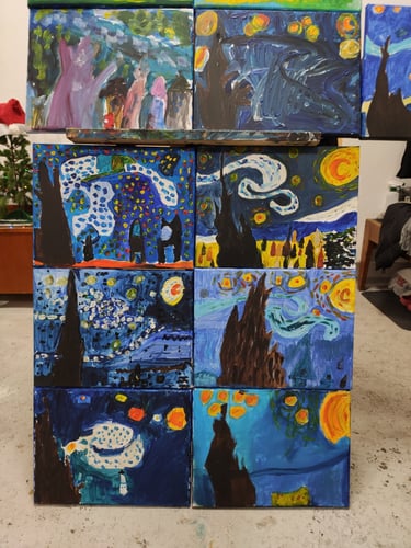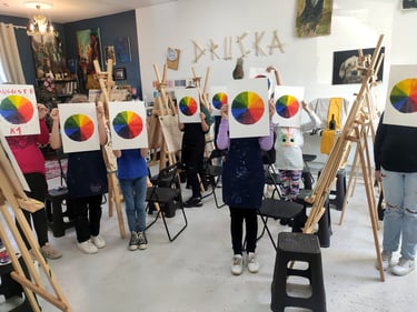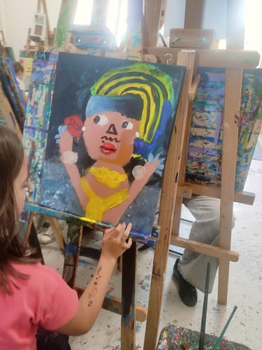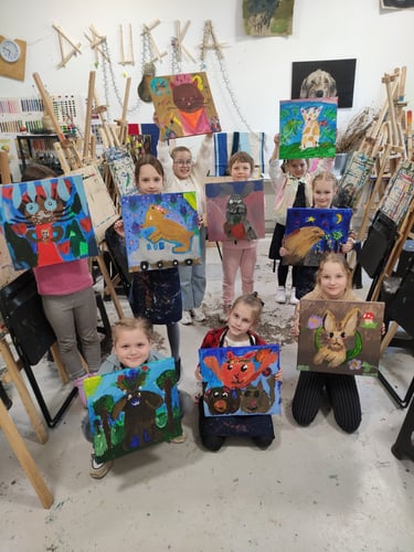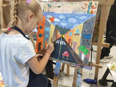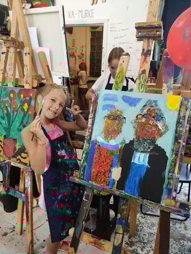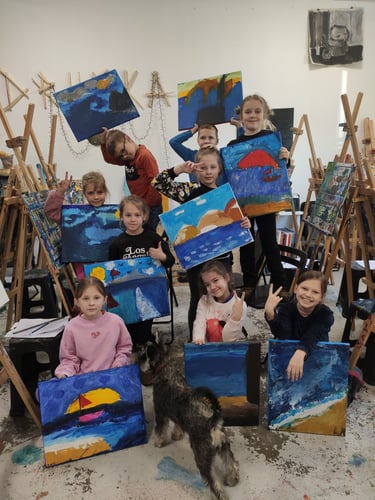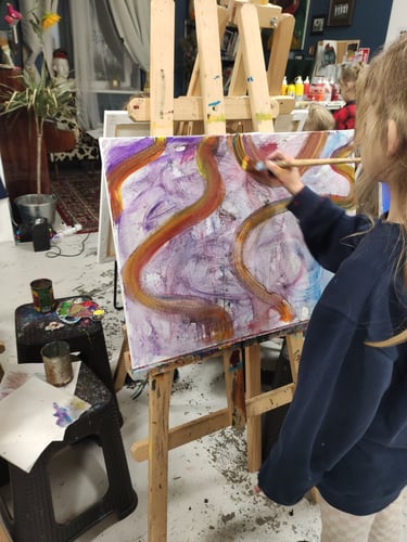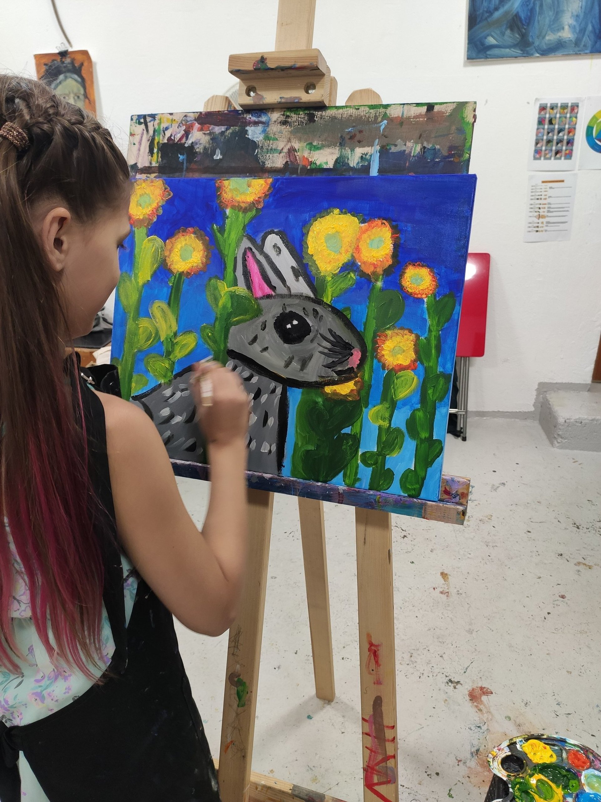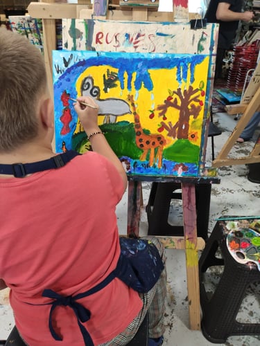 Pagrindinė misija su šio amžiaus vaikais - per žaidimą suprasti rimtus dalykus. Mokomės pagrindinių dalykų - kaip normuoti dažus, kaip maišyti ir gauti norimas spalvas, kaip susidėlioti kompoziciją, kaip išreikšti ir dėlioti mintis ant drobės.