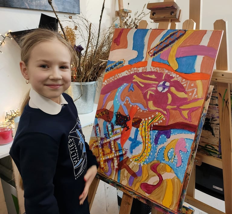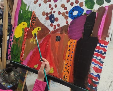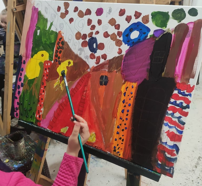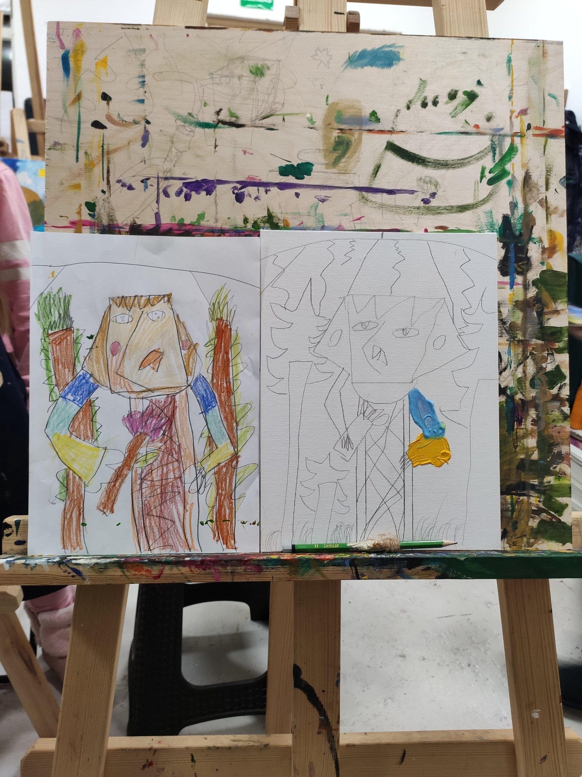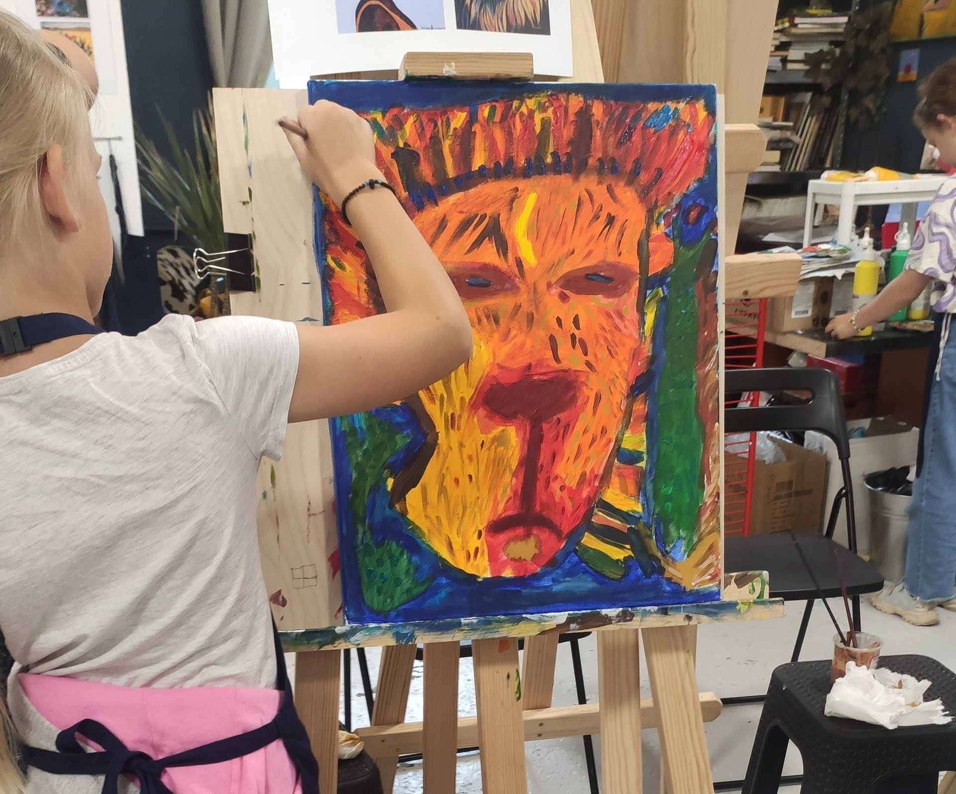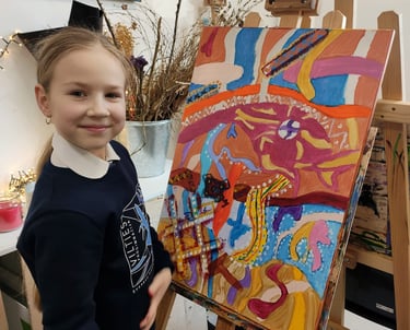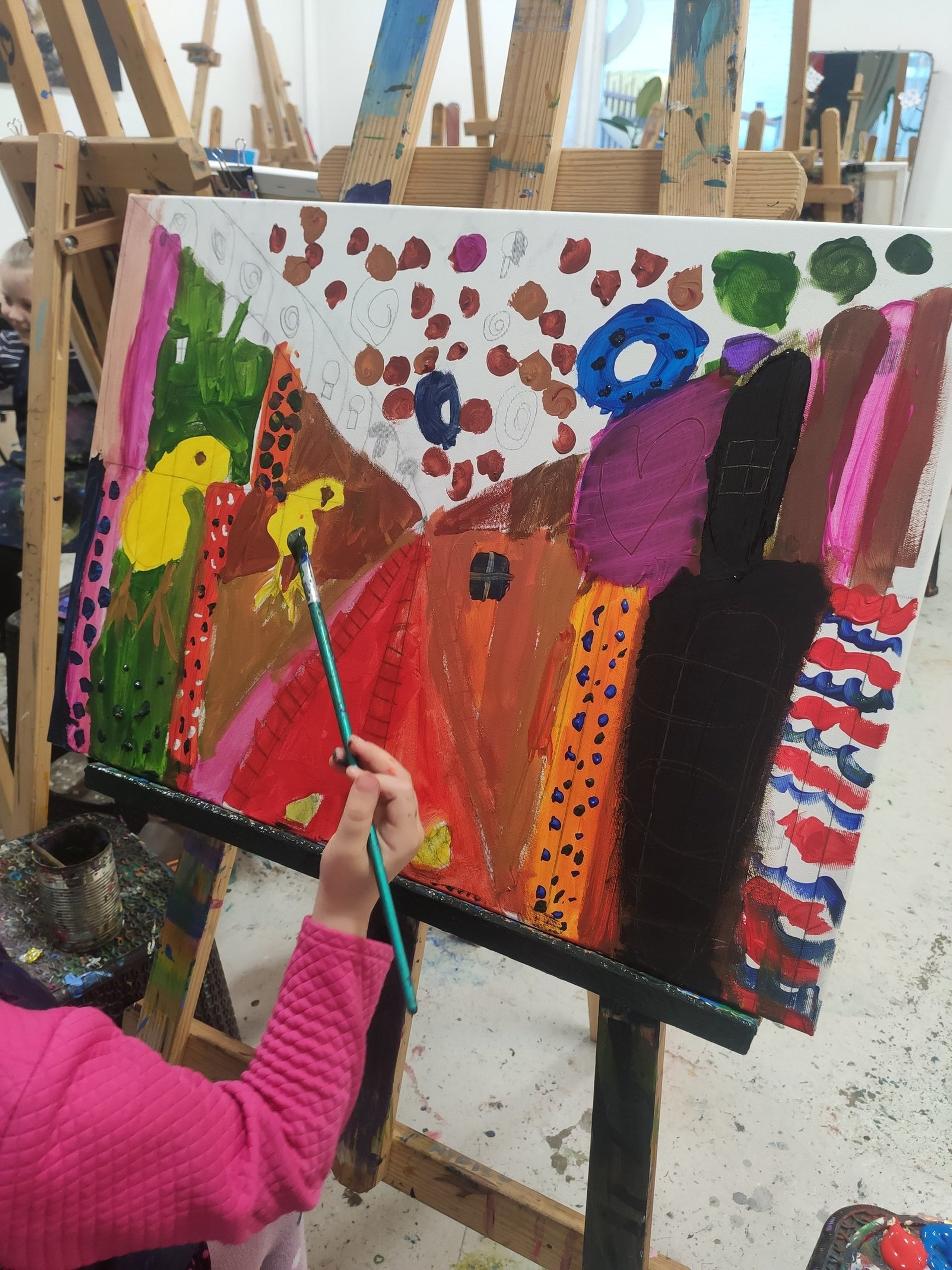 Pagrindinė misija su šio amžiaus vaikais - per žaidimą suprasti rimtus dalykus. Mokomės pagrindinių dalykų - kaip normuoti dažus, kaip maišyti ir gauti norimas spalvas, kaip susidėlioti kompoziciją, kaip išreikšti ir dėlioti mintis ant drobės.
